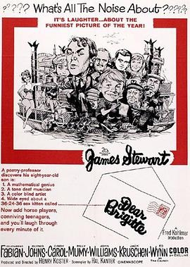 Dear Brigitte is one of the funniest comedies from the 1960s, about a tone-deaf, color-blind boy genius with one interest: Brigitte Bardot. James Stewart plays professor Robert Leaf, a typical college professor (when speaking of college professors typical means liberal, but this was 40 years ago and labels change). Leaf teaches poetry, lives in a houseboat in San Francisco, vocally opposes nuclear power and progress in general. He has an original way to make the family stick together - family concerts. His daughter calls him square. Leaf's 8-year old son Erasmus is played by Billy Mumy (Sammy the Way Out Seal, Lost In Space, Bless The Beasts & Children, Three Wishes). Leaf hopes to find artistic genius of some sort in his only son, and nurtures him in music, painting, literature, etc. But Leaf is disappointed, to put it mildly, when it turns out Erasmus has a gift for math, can out-think the colleges newest computer, instantly compute horse-race winners. I don't want to give away too much of the plot, but Erasmus had been writing to Bardot regularly, and after the family comes to depend on his ability, his love-sickness causes a mental block. Glynis Johns (Father's Delicate Condition, The Cabinet of Caligari, Mary Poppins) plays Leaf's wife. Ed Wynn (Requiem For A Heavyweight, Mary Poppins) is a neighbor / captain / narrator. Other cast include Fabian, Cindy Carol, John Williams, Jesse White, Jack Kruschen, and James Brolin in an early bit part. Brigitte Bardot appears at the end.